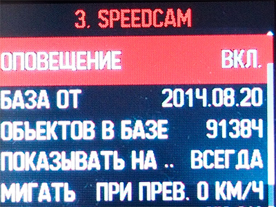 Speedcam - здесь настраиваются не только различные скоростные оповещения. В этом видеорегистраторе отрабатываются 17 видов предупреждений: определенные объекты, опасные повороты, "лежачие полицейские", школьная зона - и так далее и тому подобное. Всего база содержит более 90 тысяч объектов.