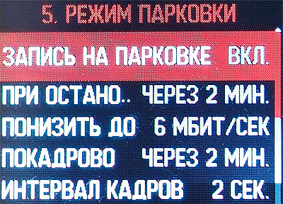 Настройки режима парковки. Такой режим съемки предоставляют многие видеорегистраторы, но здесь этот режим - более чем продвинутый.
