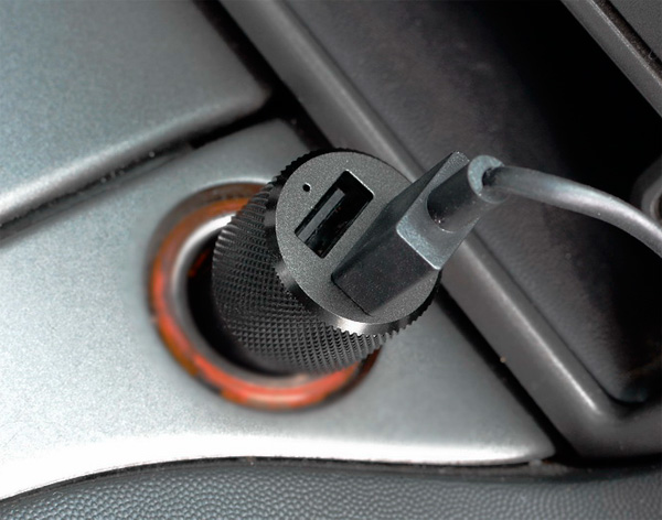 Кстати, мне еще давали посмотреть обновленную версию для трассы - там был уже другой адаптер. В нем два разъема USB с током 3,2 А (можно хоть iPad заряжать). У него кабель питания не закреплен намертво, а вставляется в USB-порт адаптера.