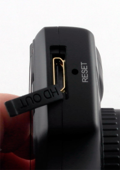 На верхнем торце слева направо: переключение режимов фото/видео, кнопка питания, посадочное гнездо для держателя, аудиовыход, порт miniUSB.