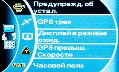 Предупреждение об усталости - установка задержки во времени, после которой появляется предупреждение об усталости. Никаких датчиков на этот счет нет, просто, например, через 4 часа вождения появится сообщение о том, что пора отдохнуть.