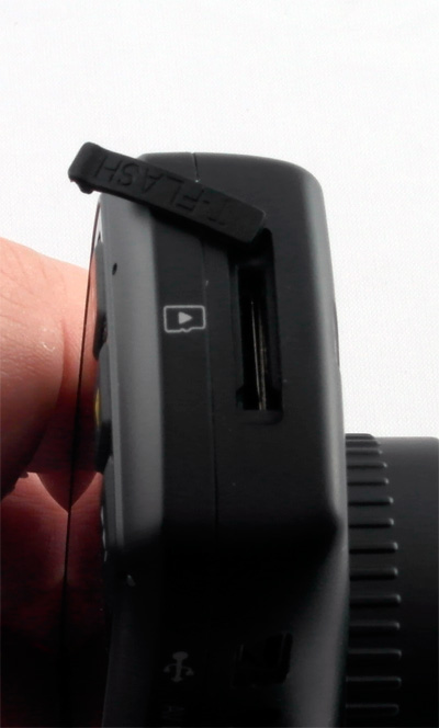 На левом торце - слот под карту памяти microSD (до 32 Гб).