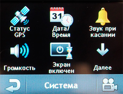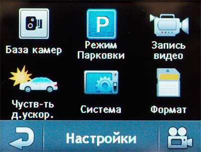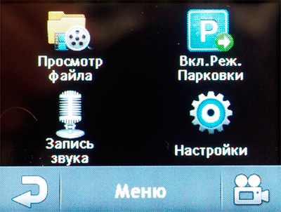 Слева снизу расположена пиктограмма, вызывающая самые разнообразные настройки видеорегистратора.
