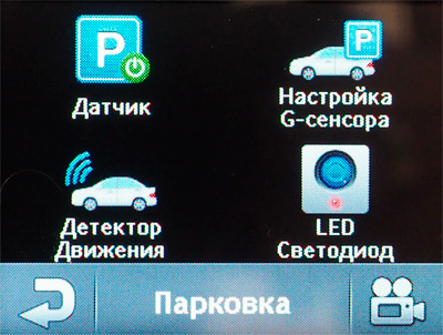 Настройка режима парковки: чувствительность сенсора, зажигать или нет светодиод.