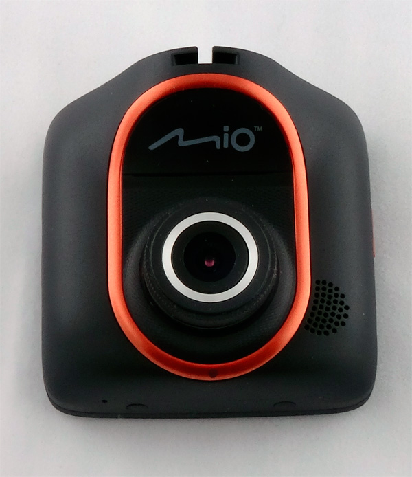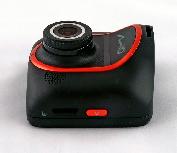 Видеорегистратор - небольшой по размеру, корпус сделан из качественного матового пластика. На лицевой стороне находятся камера и решетка динамика, на верхнем торце - посадка под крепление на стекле.