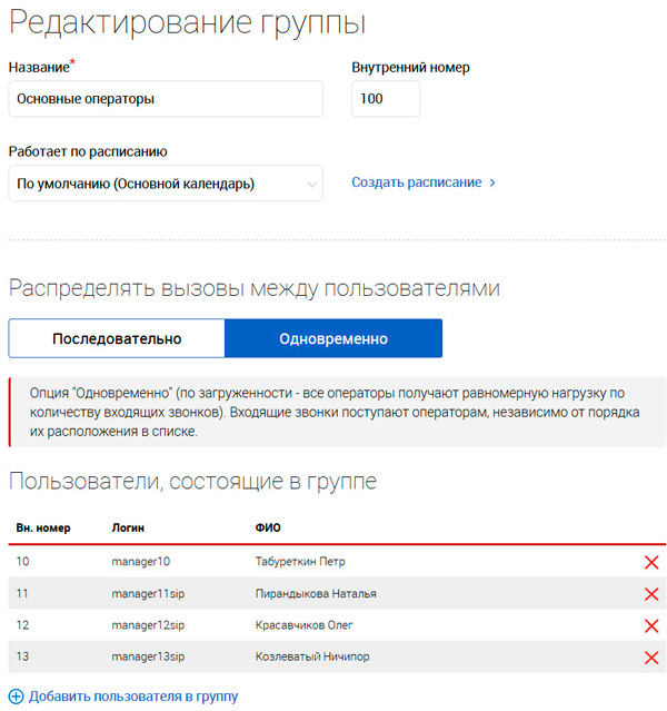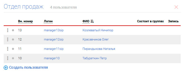 Раздел "Группы". Давайте создадим группу основных операторов и включим туда определенных пользователей.