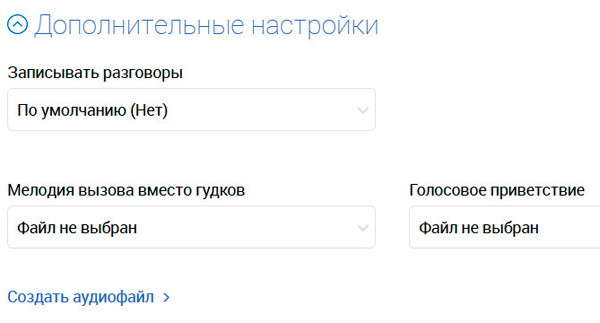 Раздел "Аудиофайлы" - создание и хранение аудиофайлов, нужных для голосовых меню и автоответчиков.