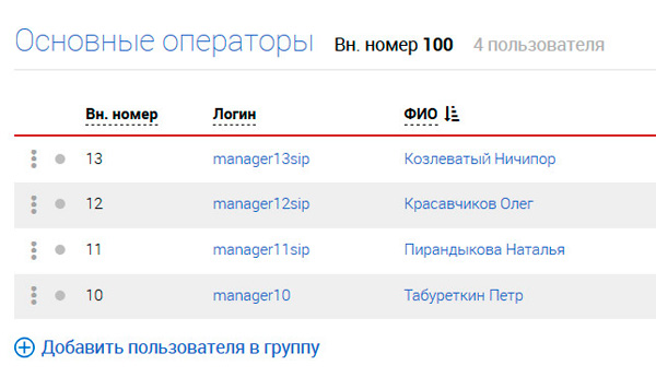 К пользователю, находящемуся на линии, можно подключиться для скрытого прослушивания, для режима "Суфлер" (когда пользователь вас будет слышать, а клиент - нет), также их можно объединять для проведения конференций.