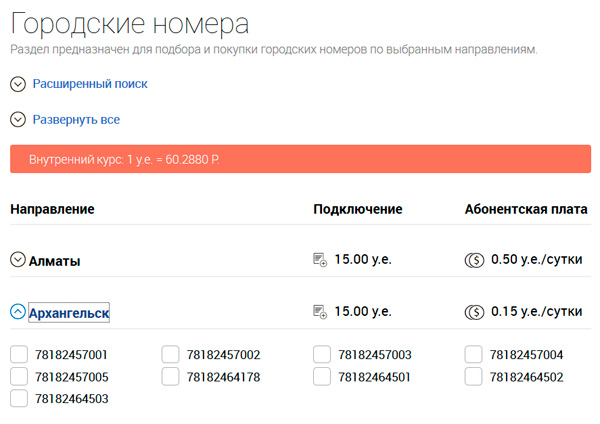 Городские номера можно купить с кодами для различных городов России.