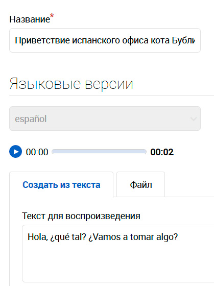Процесс создания аудиофайла. Ему дается название, также вы выбираете язык - в случае, если требуется поддержка нескольких языков.