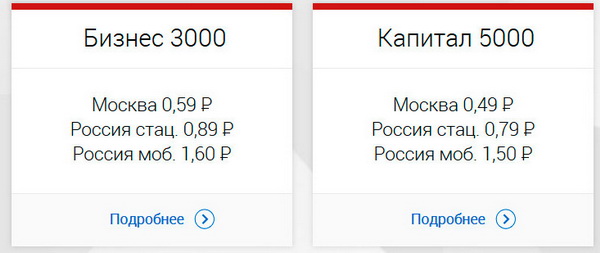 Для корпоративных клиентов существует четыре варианта тарифов: от 495 рублей в месяц до 5000 рублей. В каждый тариф входит определенный пакет звонков на стационарные и мобильные номера (как локальные, так и по России), также там есть какой-то пакет входящих номеров.