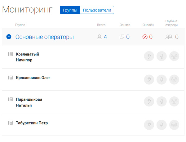 • мониторинг - подробная статистика загрузки каждого оператора.