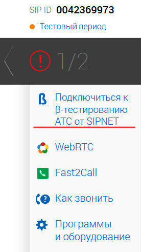 Далее в личном кабинете нужно щелкнуть по ссылочке "Подключиться к тестированию АТС SIPNET" (сервис пока работает в режиме бета-тестирования).
