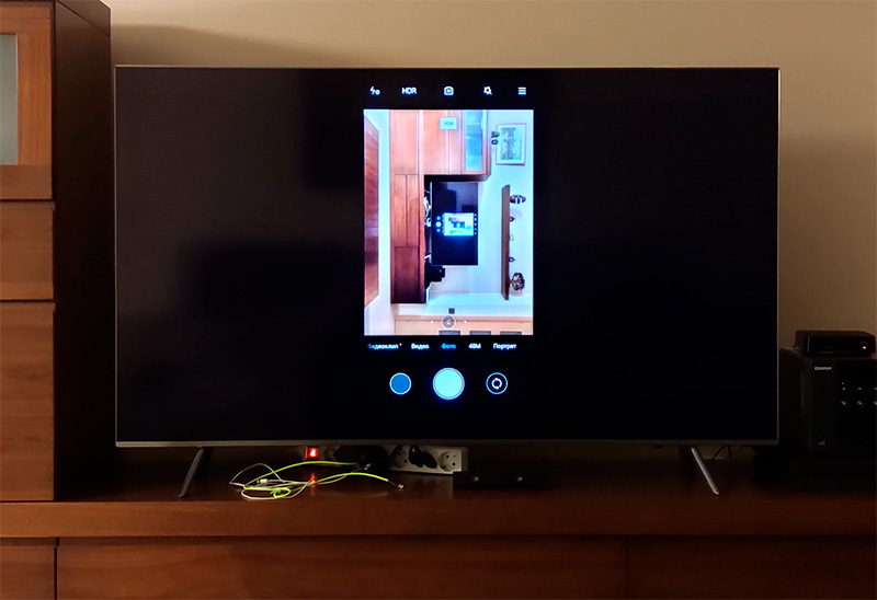 Ну и вот фото - на телевизоре транслируется приложение "Фотокамера" на смартфоне, которым я снимаю телевизор.