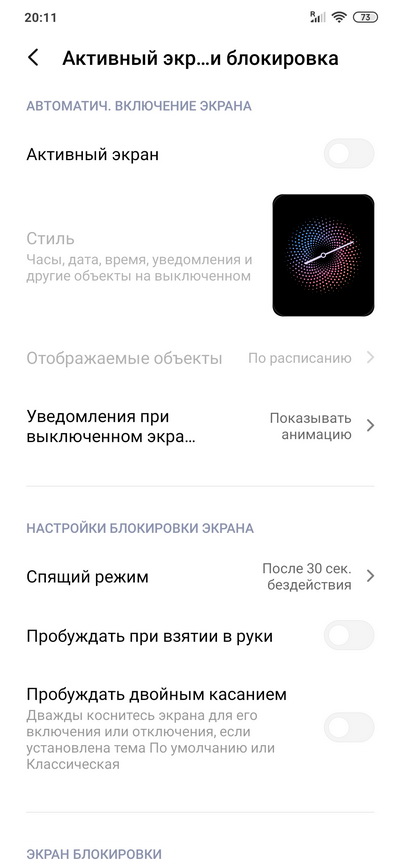 Для постоянно включенного экрана можно настраивать анимацию - я заснял ролик, как это выглядит.