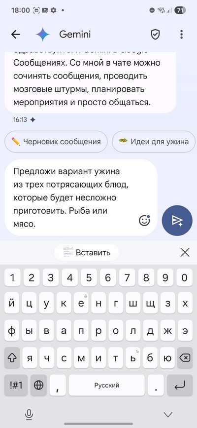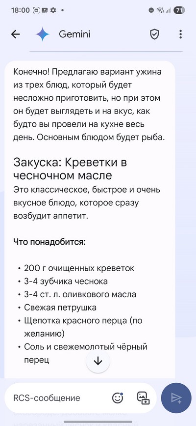 Ну и, конечно же, его можно просить о чем угодно - вот, например, я его попросил предложить вариант ужина из трех блюд, которые несложно приготовить.