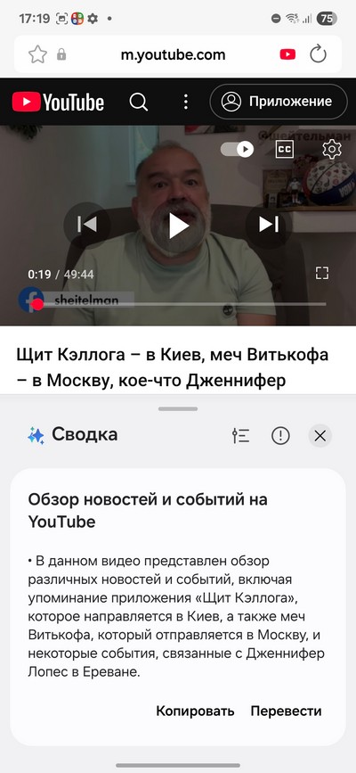 Во многих обзорах пишут, что эти возможности доступны в приложении YouTube, но я там ничего подобного не вижу, что неудивительно - это не приложение Samsung. А вот из браузера Samsung вы можете использовать возможности Galaxy AI для YouTube.