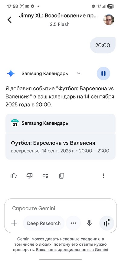В смартфоны Samsung (не только в них, разумеется) интегрирован ИИ-ассистент Google Gemini. Он вызывается по длинному нажатию кнопки питания, и его можно просить сделать самые разнообразные вещи: позвонить кому-нибудь, отправить сообщение, найти какой-то ролик в YouTube, написать заметку в Samsung Notes, создать напоминание в Samsung Calendar и так далее.
