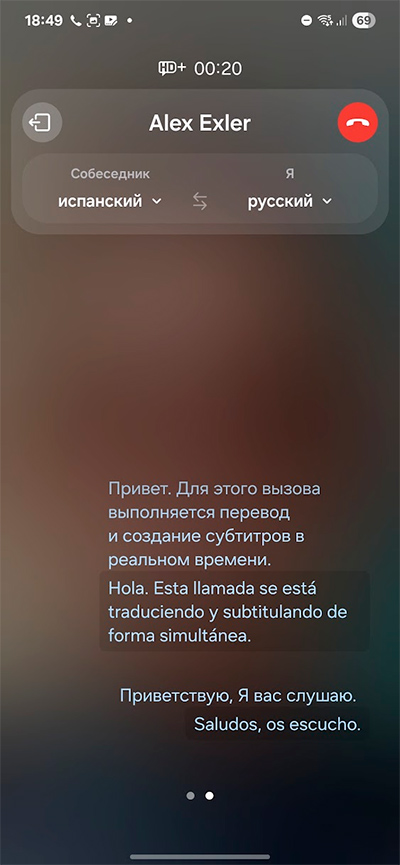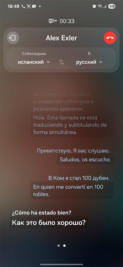 Мы с сыном эту возможность как следует потестировали - он разговаривал на испанском, я на русском - сначала на простых диалогах, потом имитировали звонок от управляющей компании, которая предлагала перейти на другой тариф, ну и в итоге, к сожалению, вывод однозначный: на данный момент этой штукой реально пользоваться нельзя, потому что качество распознавания голоса и перевода в данном случае - ниже плинтуса.