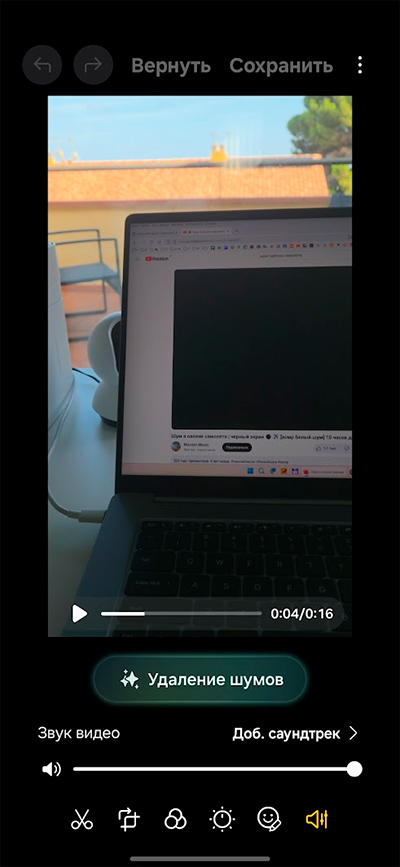 Интересная возможность, которая показала хорошие результаты. Если в видео есть всякие посторонние шумы, то при обработке можно вызвать функцию Galaxy AI, которая может убирать посторонние шумы.