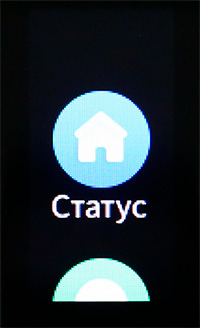 "Статус" - сегодняшний статус: шаги, пульс, расстояние, калории, оповещения о бездействии.