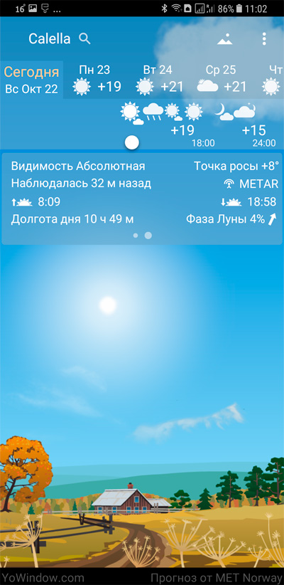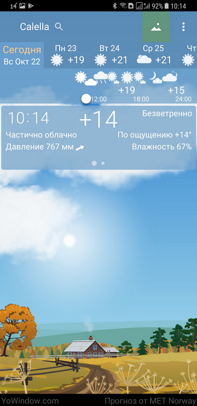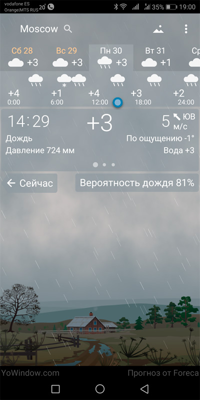 YoWindow - симпатичное погодное приложение