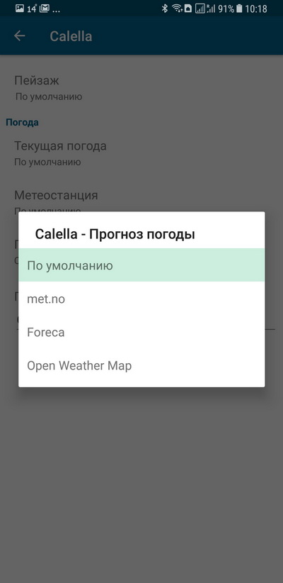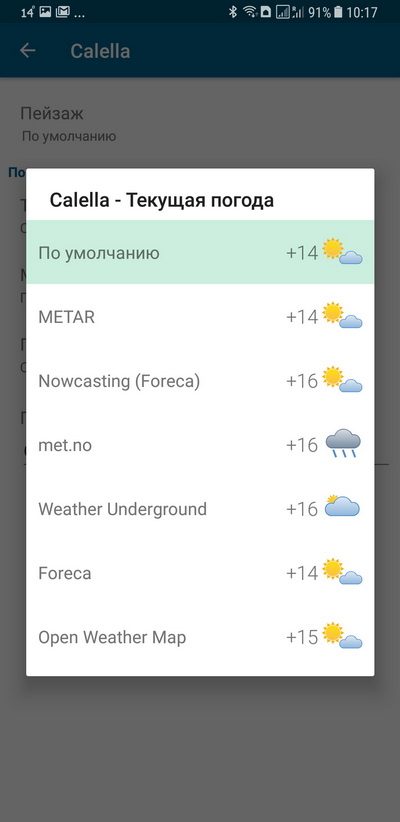 Я советую выбрать источником прогноза погоды либо met.no (он по-умолчанию), либо Foreca.