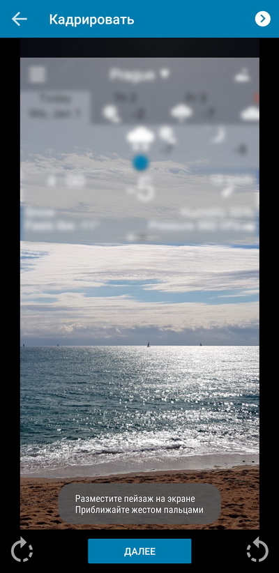 Добавляем ее в пейзажи, кадрируем.