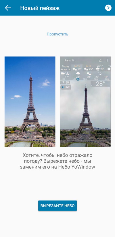 Вот на этом этапе можно отметить небо - программа там будет отображать погоду и освещение.