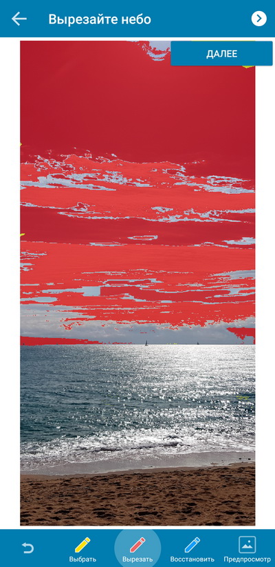 В специальном редакторе отмечаем небо.