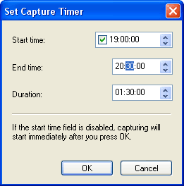 Timer - настройка записи передачи по расписанию. Вот это очень полезная возможность. При нажатии на данную пиктограмму появляется окно, в котором можно задать время старта записи и ее продолжительность.