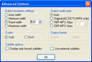В нем указываете входной файл (в данном случае - ролик, записанный на диск с помощью Nero Vision), даете имя выходному файлу, а дальше задаете желаемый размер файла после переконвертации (чтобы, например, десять часовых серий поместились на один диск, каждый из них должен быть не более 450 мегабайт), а также в разделе Advanced Settings желательно выставить минимальное разрешение - например, 528 точек. Этого разрешения вполне достаточно для просмотра телепрограмм на экране телевизора.