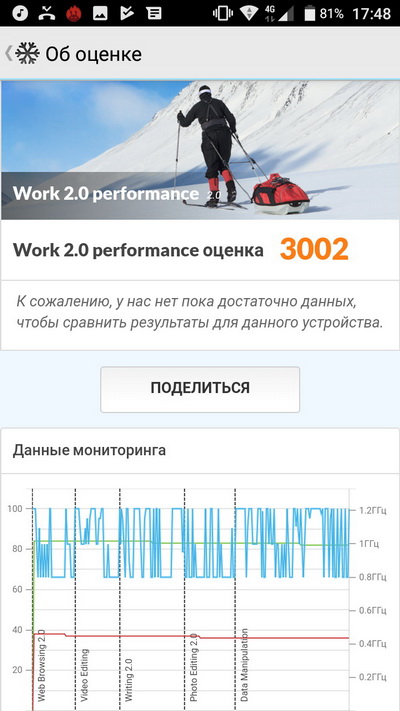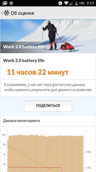 Чисто практически при обычном использовании смартфон вытягивал два дня. И хорошо себя вел под большой нагрузкой: постоянная работа с картами, браузером, поиском, периодическое фотографирование - нормально выдерживал полный рабочий день.