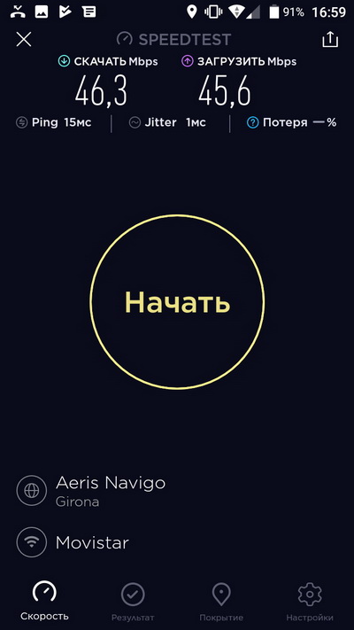 Скорость Интернета по Wi-Fi была почти максимальная.