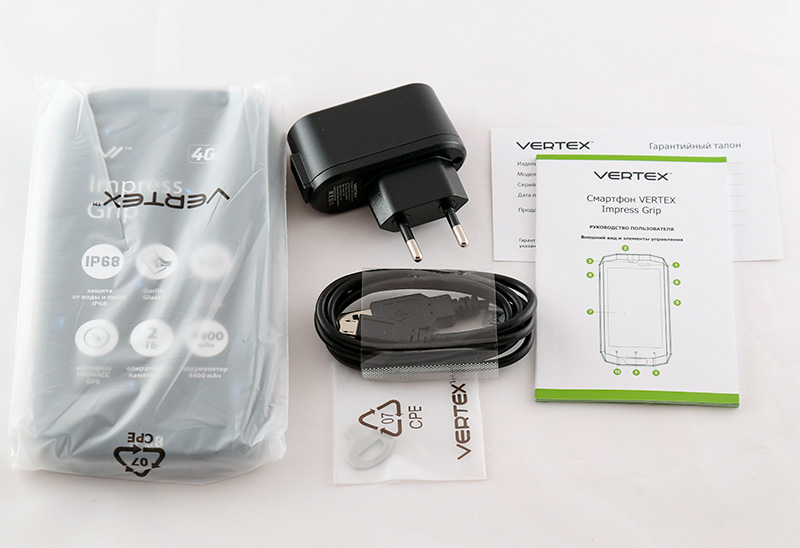 Компания мне для теста предложила модель Vertex Impress Grip - это бюджетный защищенный смартфон на чипсете Qualcomm (замечу, что обычно подобные аппараты поставляются с чипсетом Mediatek). Защита у этой модели - по стандарту IP68, то есть тут полная пыленепроницаемость и защита от погружения на глубину более 1 метра длительностью более 30 минут, причем устройство может работать в погруженном режиме.