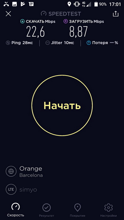 Тест мобильного Интернета давал ожидаемые для данных условий скорости.