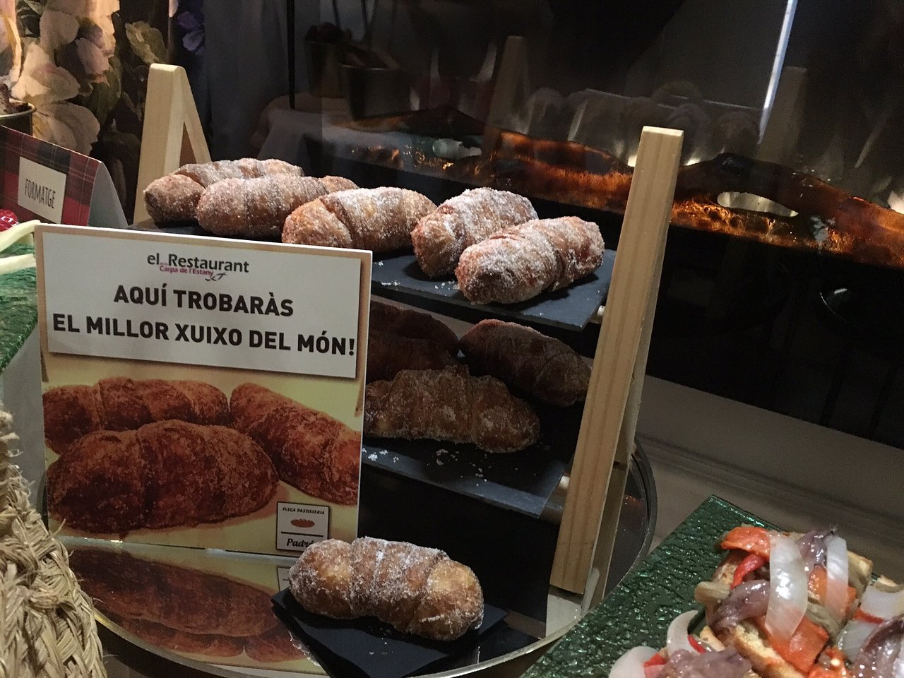 1) Там как раз рядом с пристанью прогулочных катамаранов есть симпатичный ресторанчик La Carpa de l'Estany. И в кондитерской палатке от этого ресторана обязательно нужно купить и съесть xuixo (чучо) - это такой каталанский десерт. В общем-то ничего необычного, жареная булка в сахаре с кремом за 2.50 евро. Но именно здесь этот десерт носит гордое звание "Лучший чучо мира", и даже грамота висит в рамке, как подтверждение.