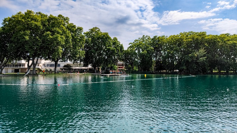 Просто так купаться в произвольном месте здесь нельзя: это озеро - природоохраняемая зона. Для купания выделяются специальные зоны, как, например, на снимке ниже. Также есть небольшие пляжи, которые относятся к ресторанчикам. Вы входите в ресторан, там что-то заказываете, а после этого можете спуститься на пляж и искупаться.
