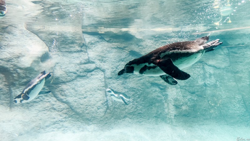 И там интересно сделано: можно спуститься вниз под отделение с пингвинами и через стекло посмотреть, как они ныряют.