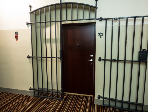 Решетки на дверях, массивные двери. Если постоялец отказывается платить - решетка закрывается.