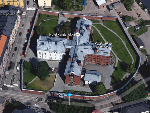 И действительно - это была тюрьма, а сейчас тут - четырехзвездочный отель "Катаянокка" (назван по имени полуострова, на котором он стоит).