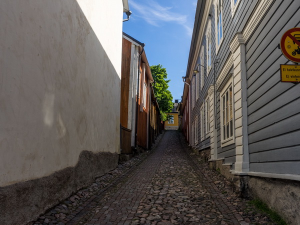 Типовая улочка старого города. Когда-то тут был сильный пожар, во время которого сгорело аж 200 домов. История сохранила имя женщины, из-за которой начался этот пожар: она готовила утку и не обратила внимание на уголек, который упал на пол. О дальнейшей судьбе этой женщины порвоочане не рассказывают, но в ответ как-то слегка плотоядно улыбаются.