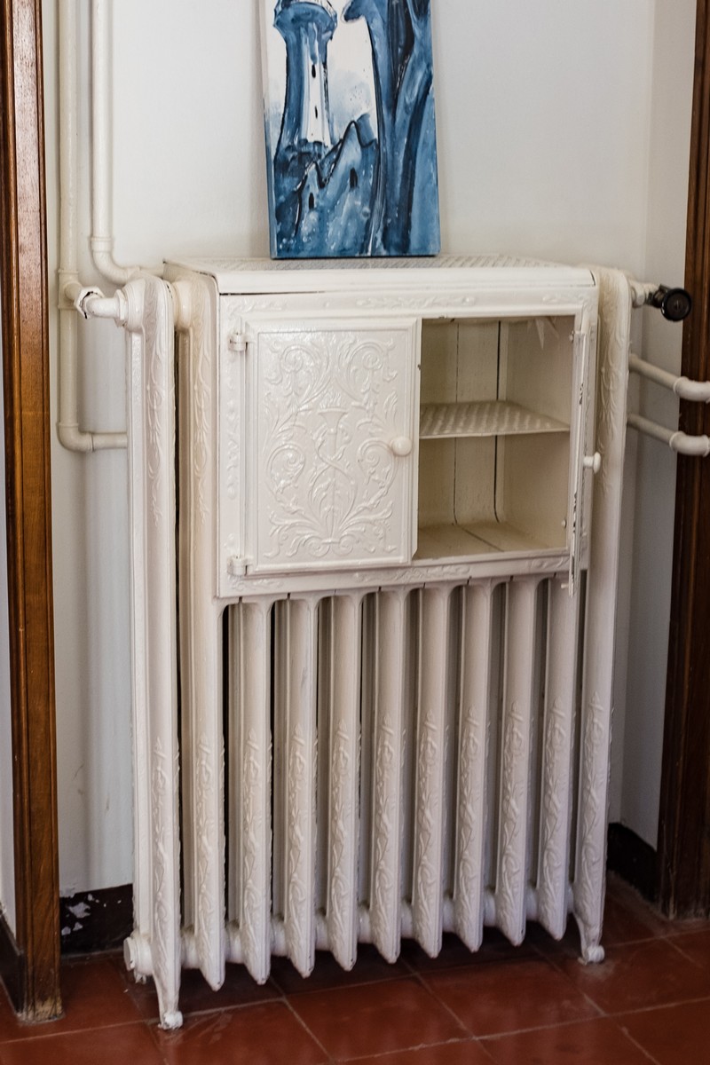 Микроволновка начала прошлого века. Металлическая коробка с дверцами над батареей, в которой разогревали блюда.