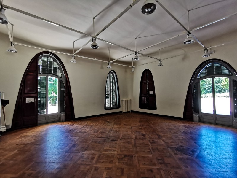 Кабинет в противоположном от большого зала конце строения. У окон поднимается нижняя часть - для проветривания.