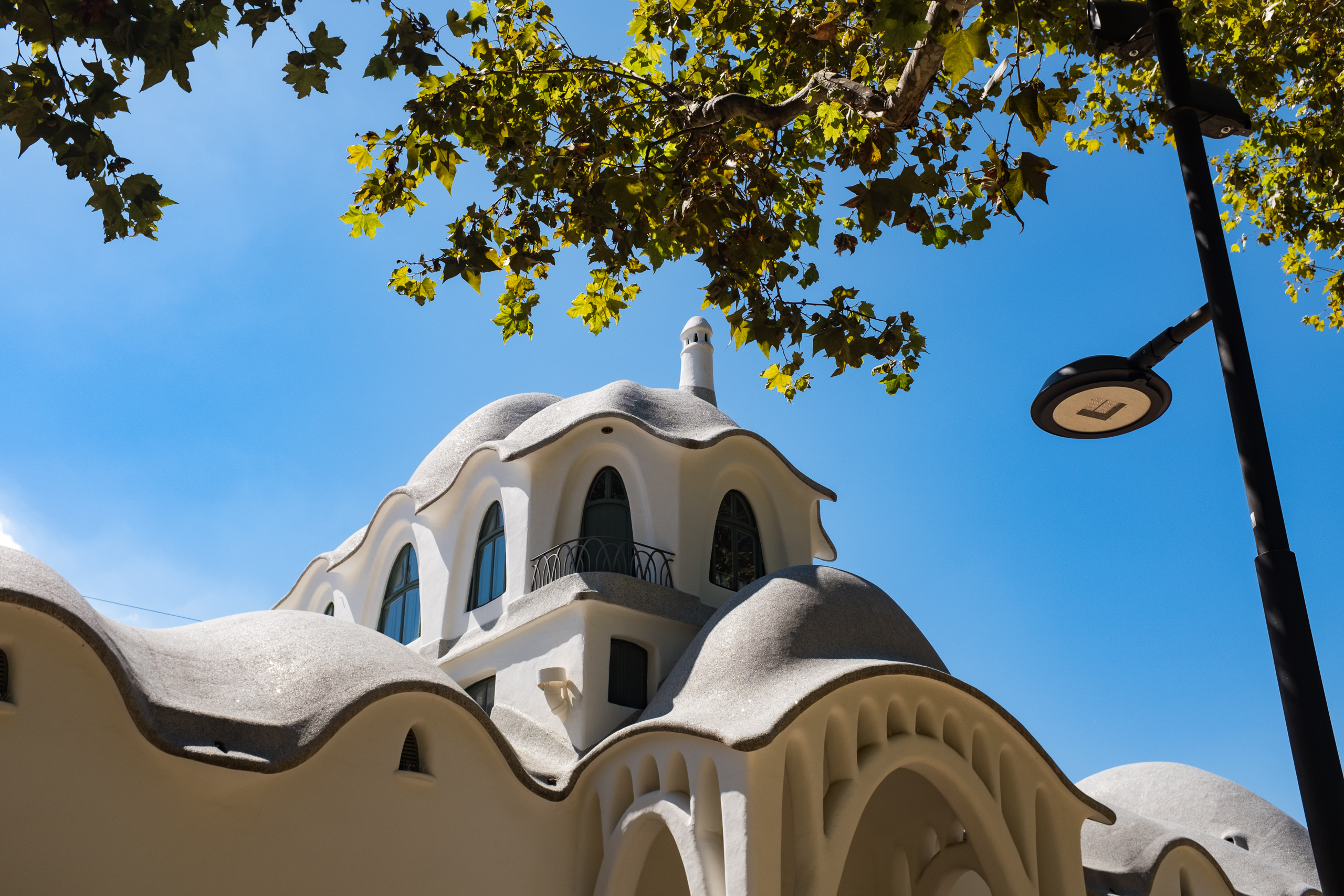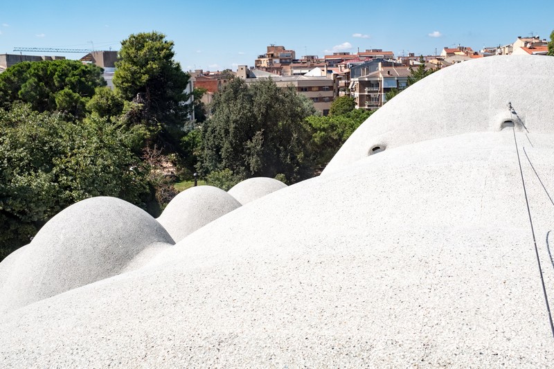 И здесь все здание было спроектировано в духе Гауди: плавные округлые линии, арки, высокие округлые крыши, максимальное использование в архитектуре элементов живой природы.