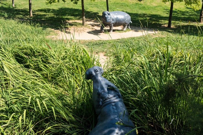 В начале парка установлены два памятника бегемотам. Из установленной здесь таблички следует, что в этих краях действительно водились бегемоты, но потом из-за изменений климата они тут повымерли.
