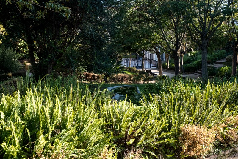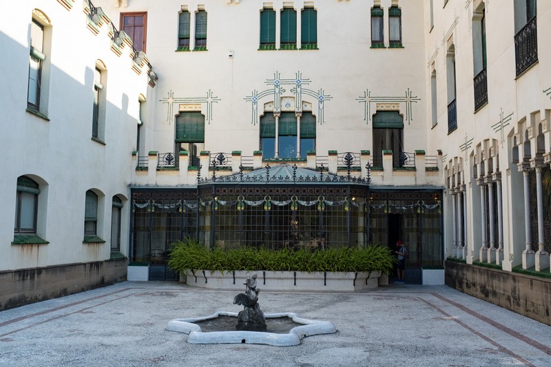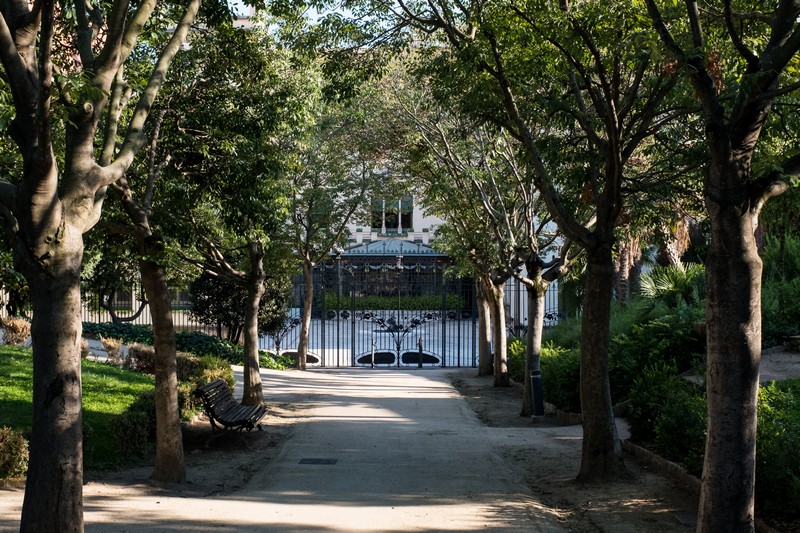 На этом осмотр строения "Алегре-де-Сагрера" был закончен, нам оставалось только посетить небольшой садик, принадлежащий особняку. Однако садик передан в общественную собственность, так что для его посещения нужно было выйти из здания, обогнуть квартал и зайти в садик через раскрытые ворота на параллельной улице.