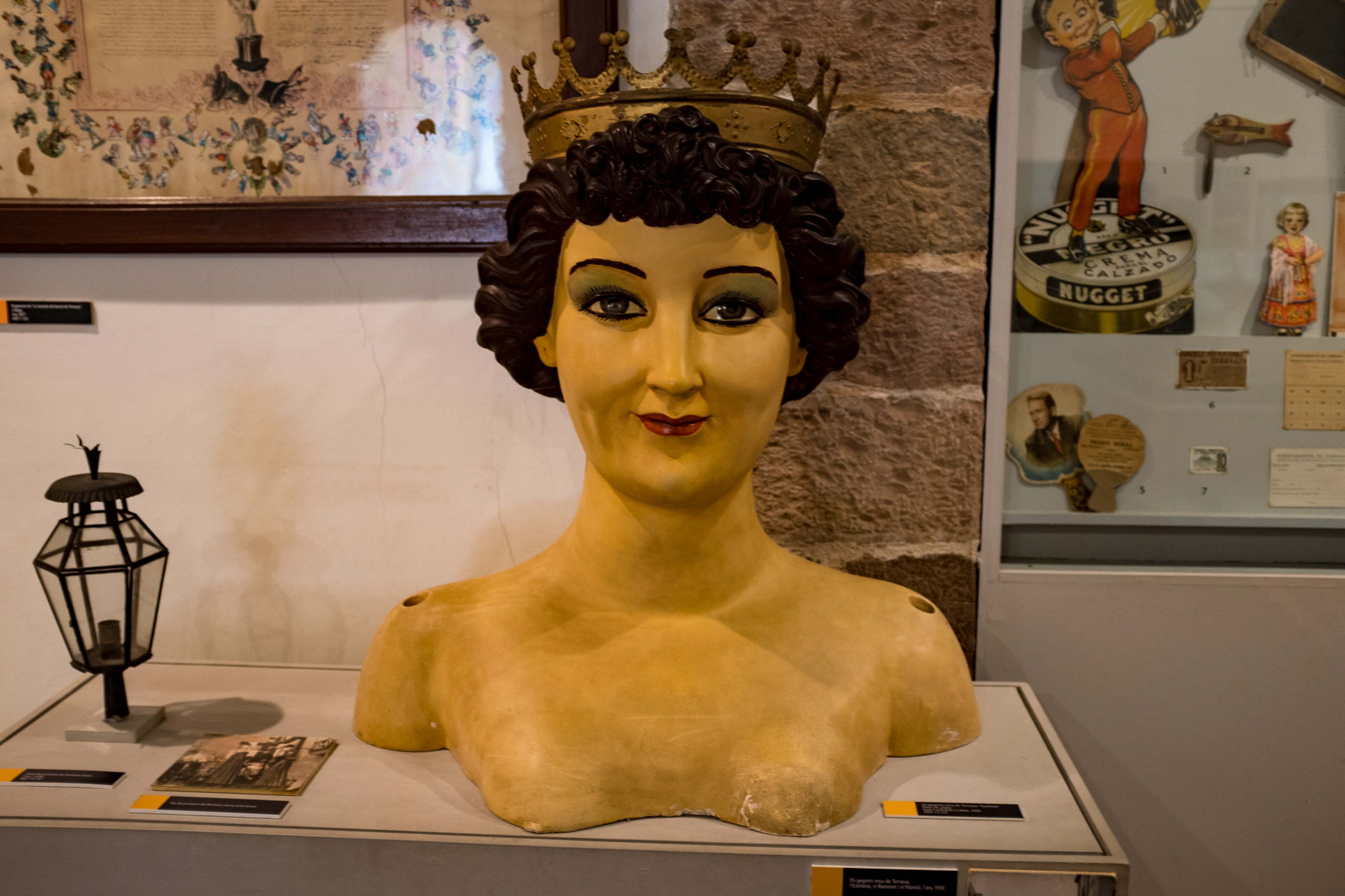 Столь любимые в Каталонии гигантские куклы. Это макет головы городской гигантской куклы Эстефании. Сама кукла изготовлена в 1950 году.