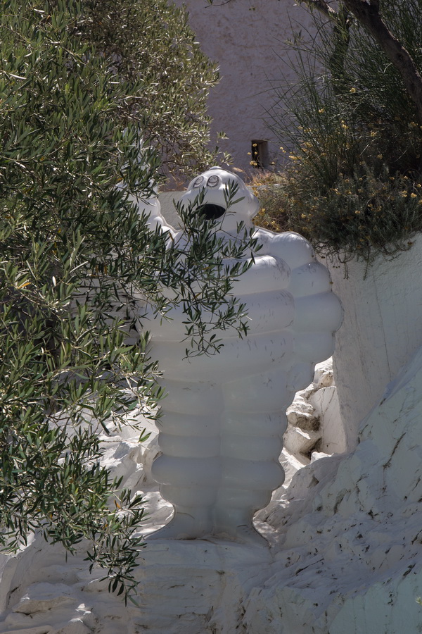 Мишленовские человечки здесь встречаются несколько раз. Уж и не знаю, почему Дали питал к этому символу такую любовь. Как известно, Дали работал в рекламе и лично придумал логотип леденцов "Чупа-чупс", однако мишленовского Бибендума нарисовал не Дали, а художник-плакатист О’Галоп.
