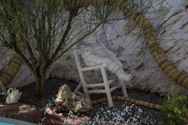 Ну и уже на выходе - очередная хохма Дали: столб с ногами в чулках и двумя воинственными пенисами.